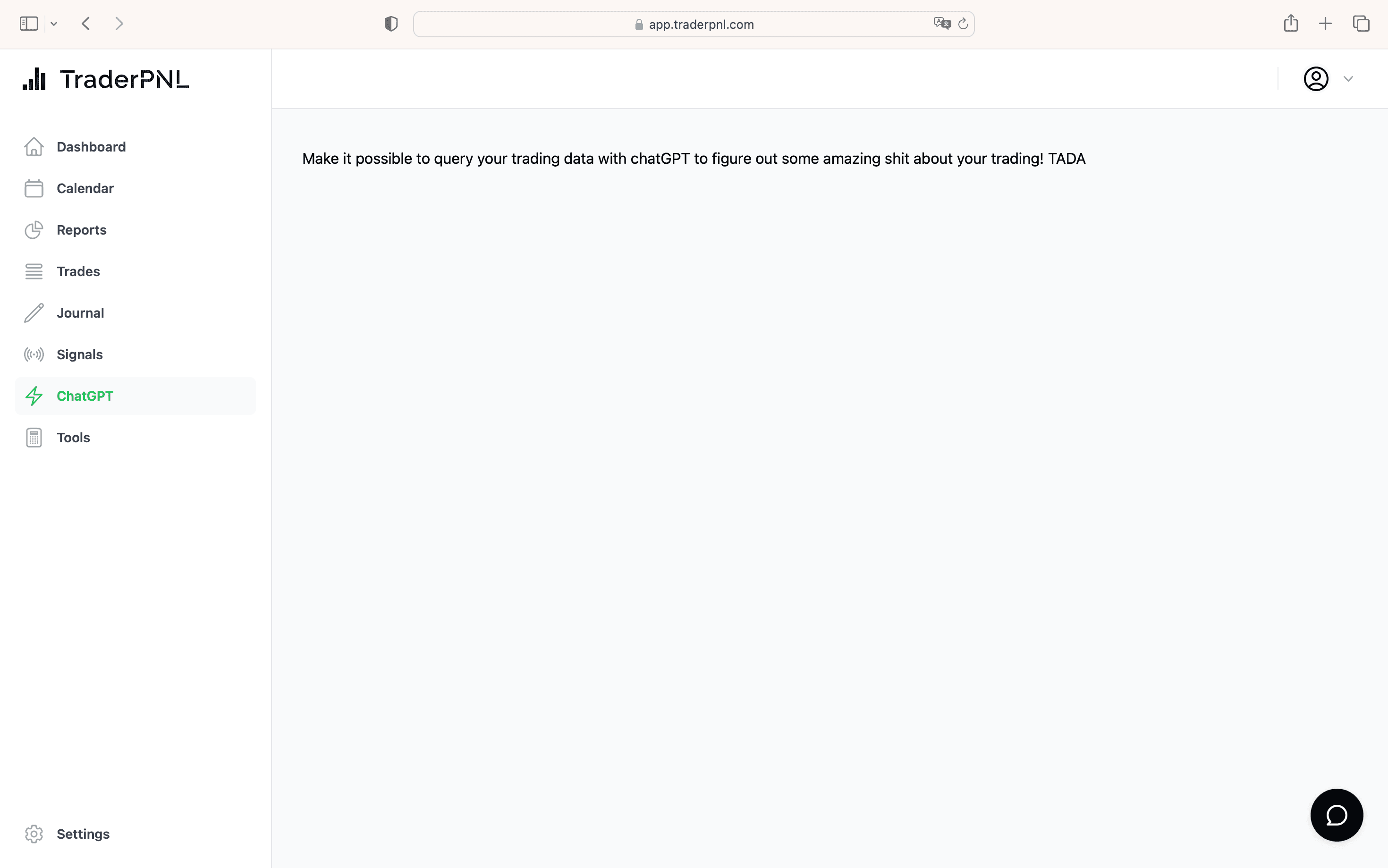 Maximize your trading profitability with TraderPNL's powerful analysis tools, powered by ChatGPT AI. With the ability to query your trading data by asking questions, you can gain deeper insights and make informed decisions to optimize your trading performance.